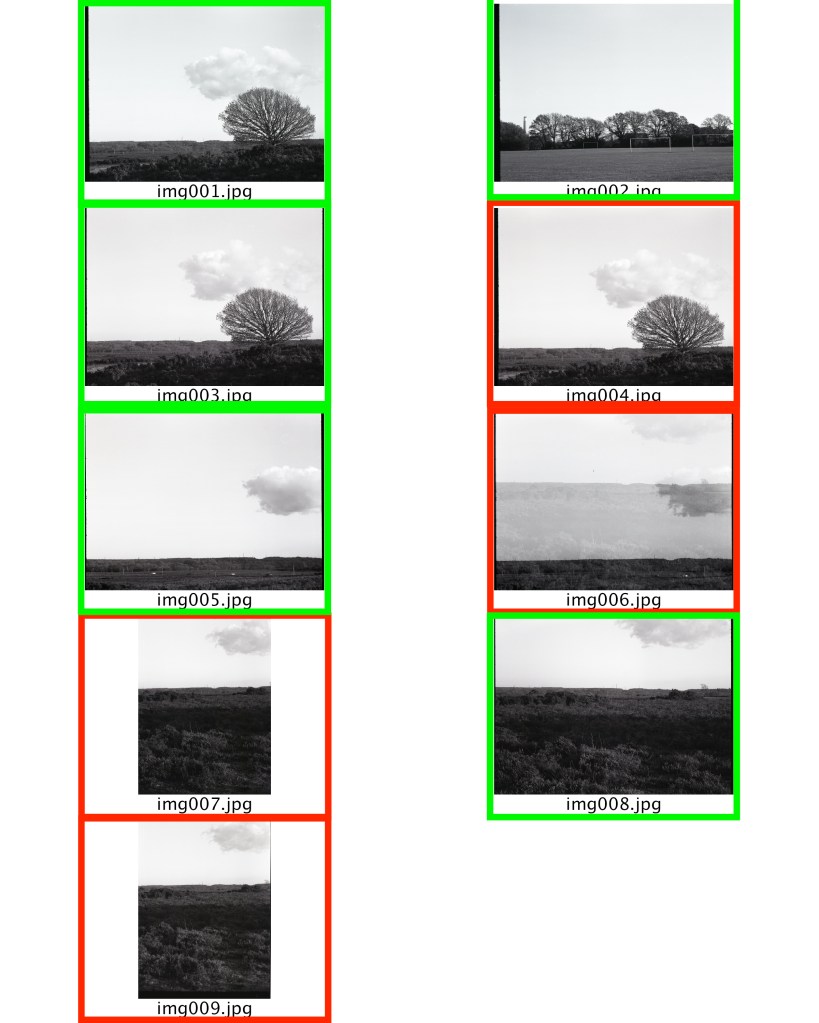 The images across this contact sheet were captured using a Mamiya RB67 medium format camera and a roll of Ilford FP4 which was out of date. The out of date nature of the film has resulted in more visible grain than usually expected with FP4. One of the rejected images from this shoot is as a result of an accidental double exposure of that frame. This double exposure also resulted in the usual 10 frames being 9.