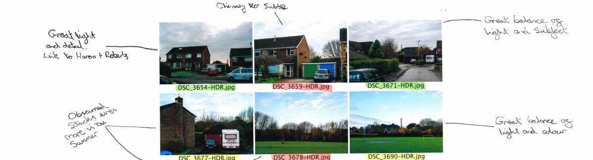 Below are the sets of contact sheets which I produced using the 50 images which featured as ‘Selected Images’ throughout this module. These were then whittled down to the 27 which feature in my Work In Progress Portfolio for Module 2. I feel very passionately about the use of contact sheets and the working into them physically with accompanying annotations and highlighting. The reflections speak for themselves and the resulting portfolio can be found in the Coursework section of this CRJ.