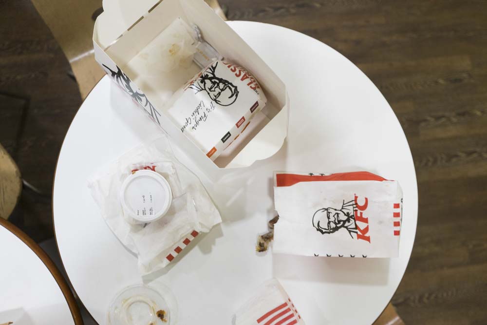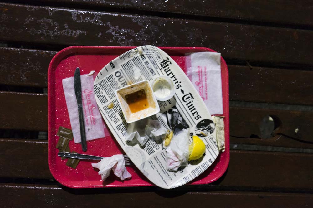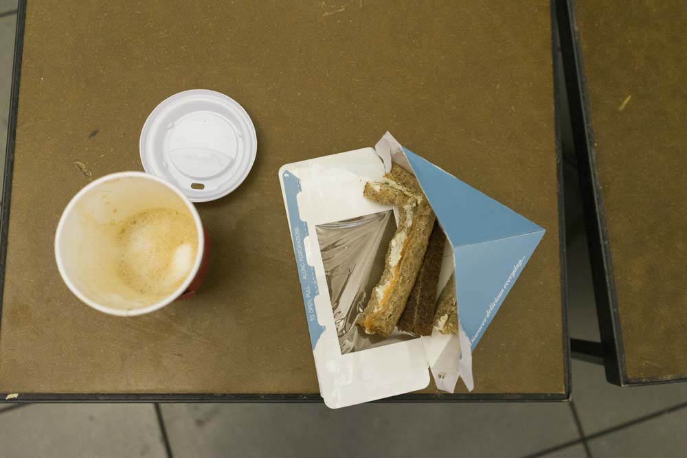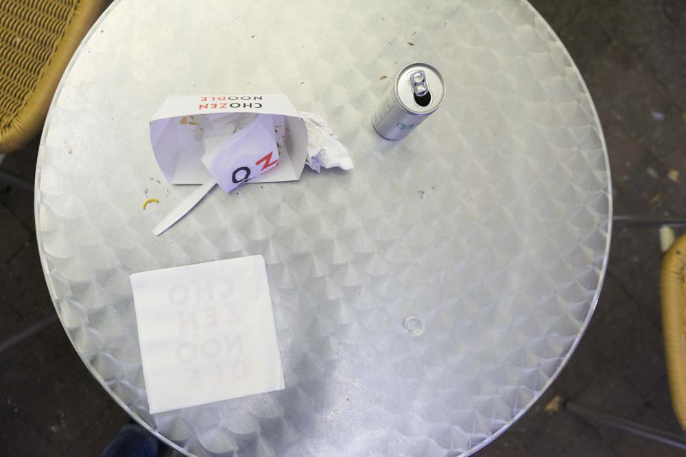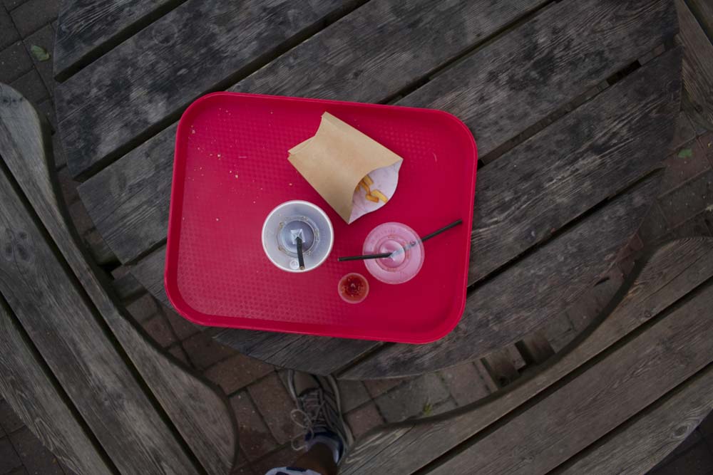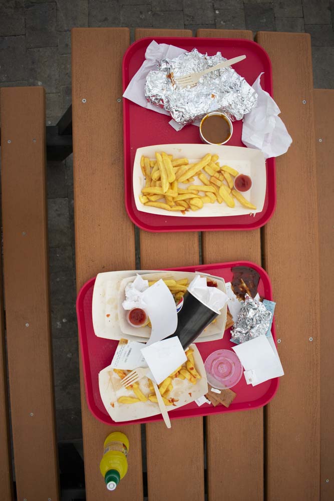 To consider this further, and as mentioned in the previous post, I would like to show more of my pre-existing and ongoing set of images ‘Signs of Life’. The intention of this work is to capture what is left behind in cafes, service areas and fast food restaurants. The people responsible for what is shown are not present in the frame but the signs that they were there are. Always from a high angle and always looking directly down at the arrangement, the images take on their own character and could serve as a commentary for single use products and food waste, both very current issues as we start the 2020’s.