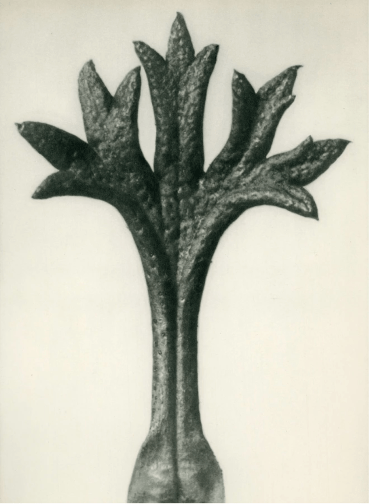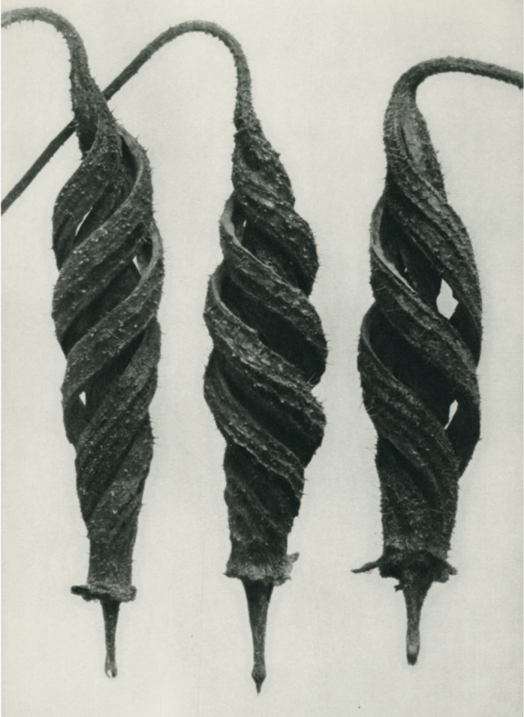 Blossfeldts extreme mastery of the technical elements of photography make these images as striking today as they were then. Ranging from plant specimens to seed pods, the images often take the appearance more alike iron works than organic.