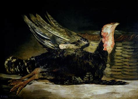 As with many Goya works, death and dead animals are common place. Many of these placements form memento mori, the reminder to the viewer of mortality and the fragility of human life. Naturally, with this subject matter, a darker light treatment is necessary.