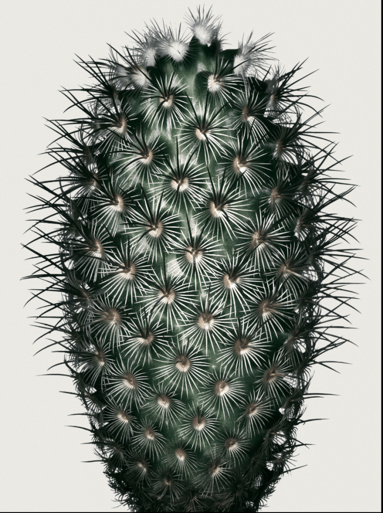 Typically in still life symbolism, plant specimens are used to show the ephemeral and fleeting nature of life. With a cacti however that implication is difficult to secure the connotation for. Typically hardy and in need of little care in terms of watering and maintenance, cacti are not typically ‘ephemeral’.