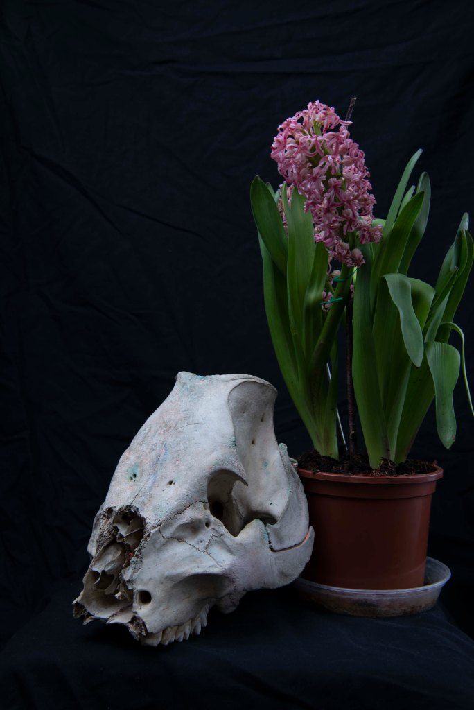 The imagery being returned to here are that of skulls and their conveyance of death and mortality. The presence of plant life is symbolic of the ephemeral nature of life. More reflections on connotation and symbology in art can be found here and here.