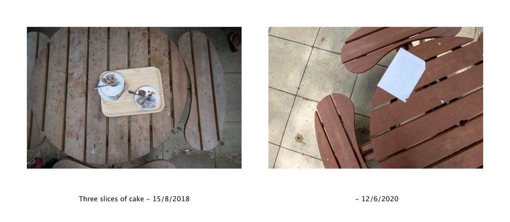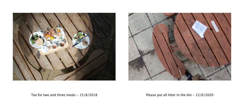 For my response to this activity I decided to return to some images from nearly two years ago. One thing I’ve developed a habit for is photographing what gets left behind on the tables of cafes and service stations etc. The images comment on the signs of life that are left behind although the people are no longer there.