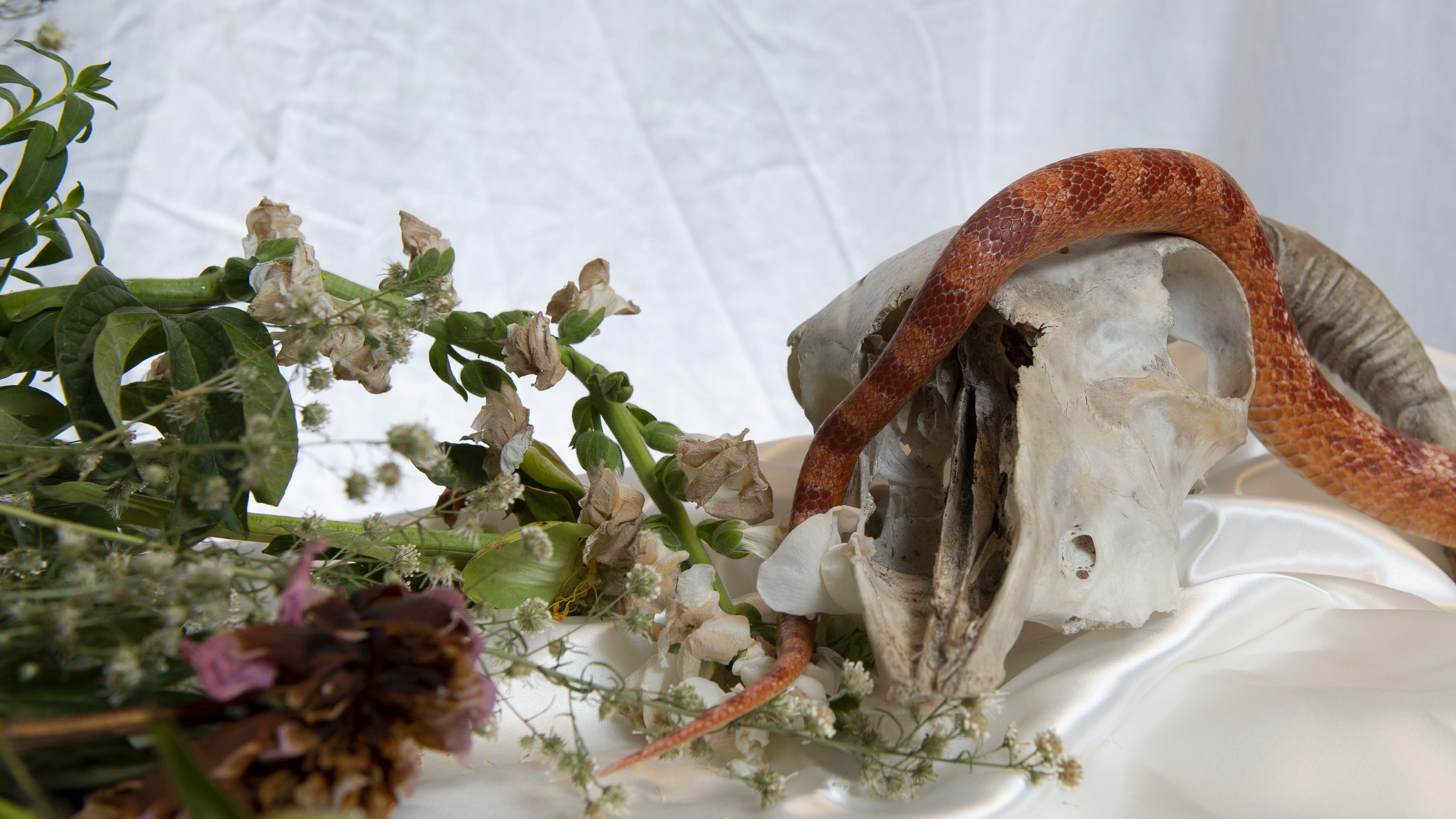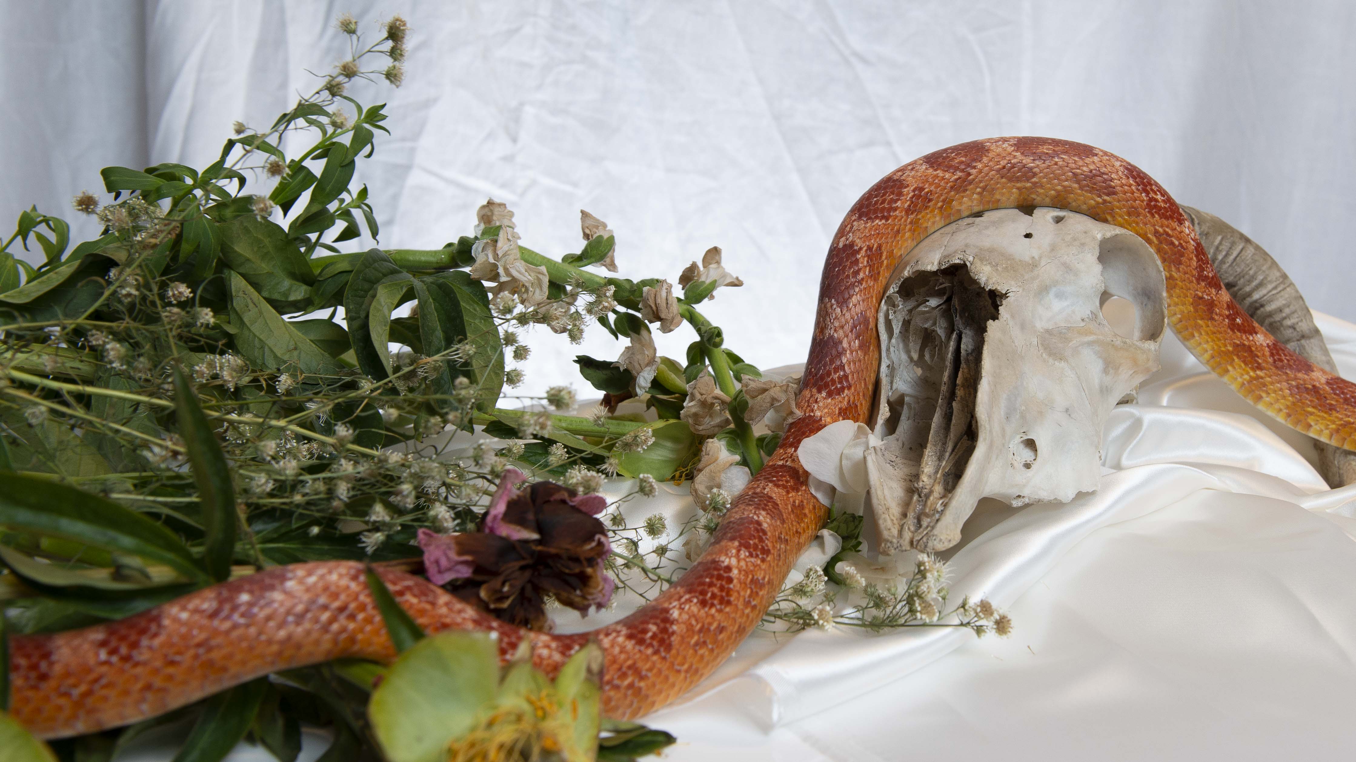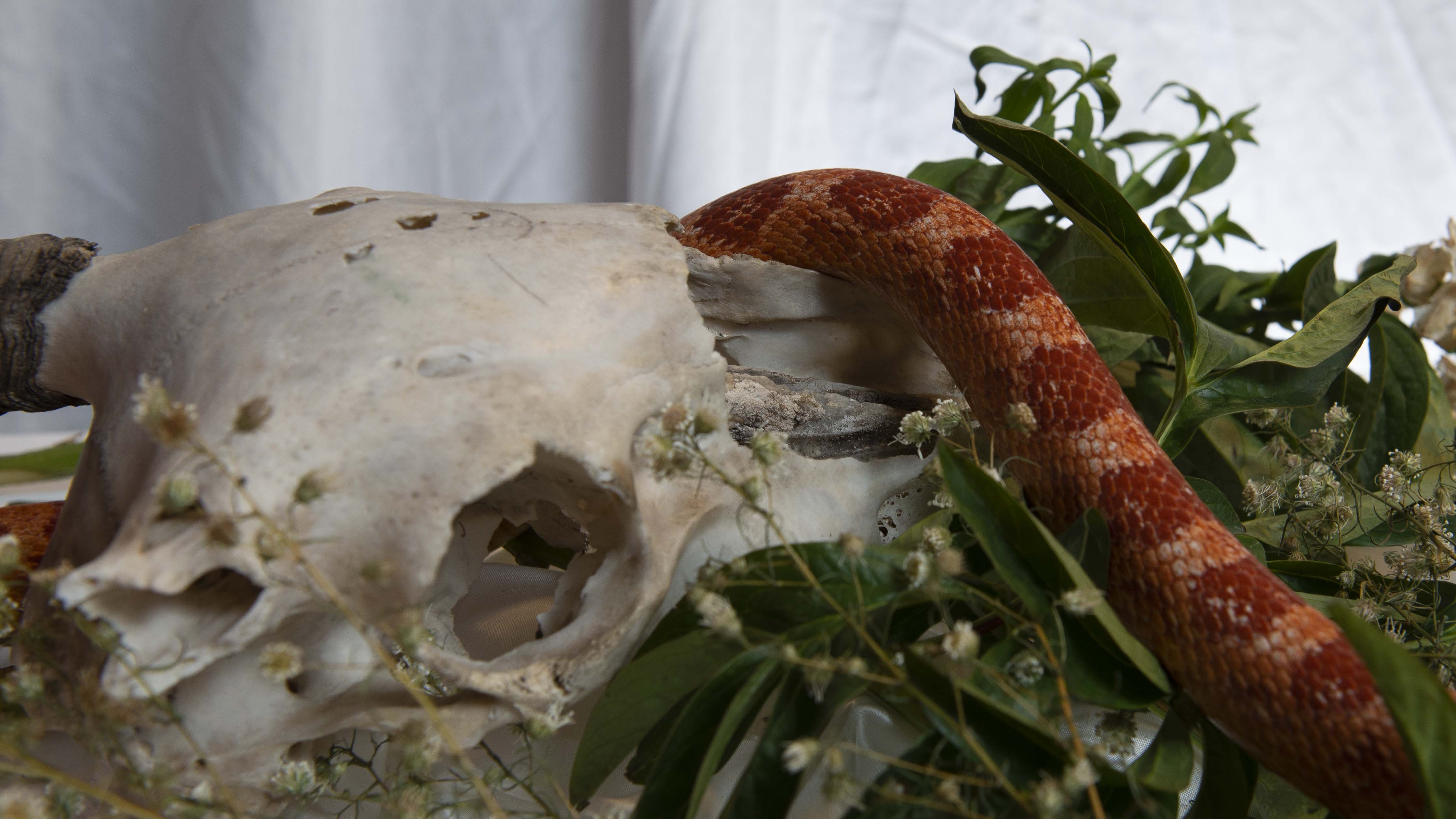 One suggestion from a peer came to just have a singular skull and then photograph the snake with that skull. The first thing that springs to mind with here is combining the snake with the previous images I had taken of skulls on black.