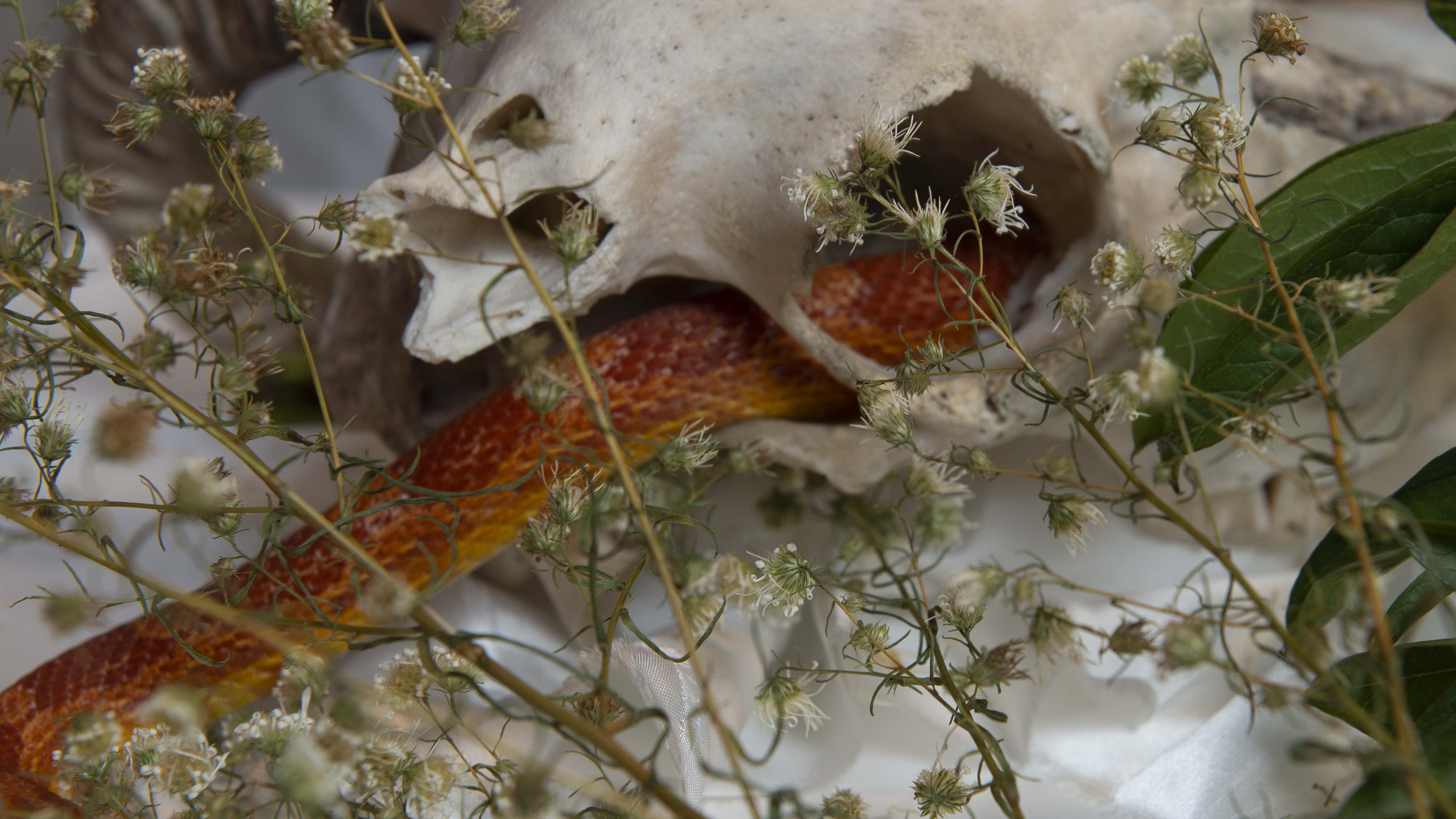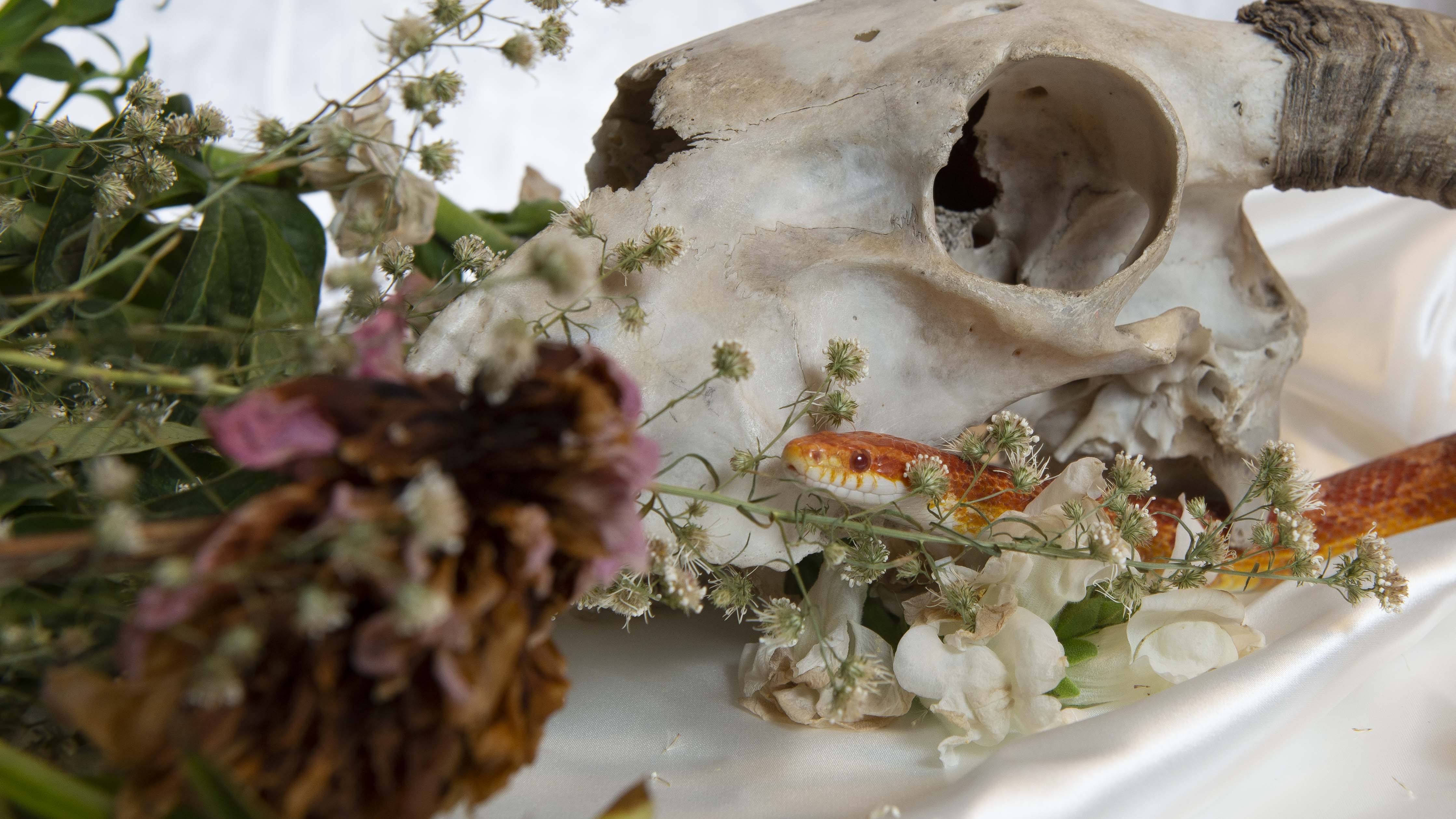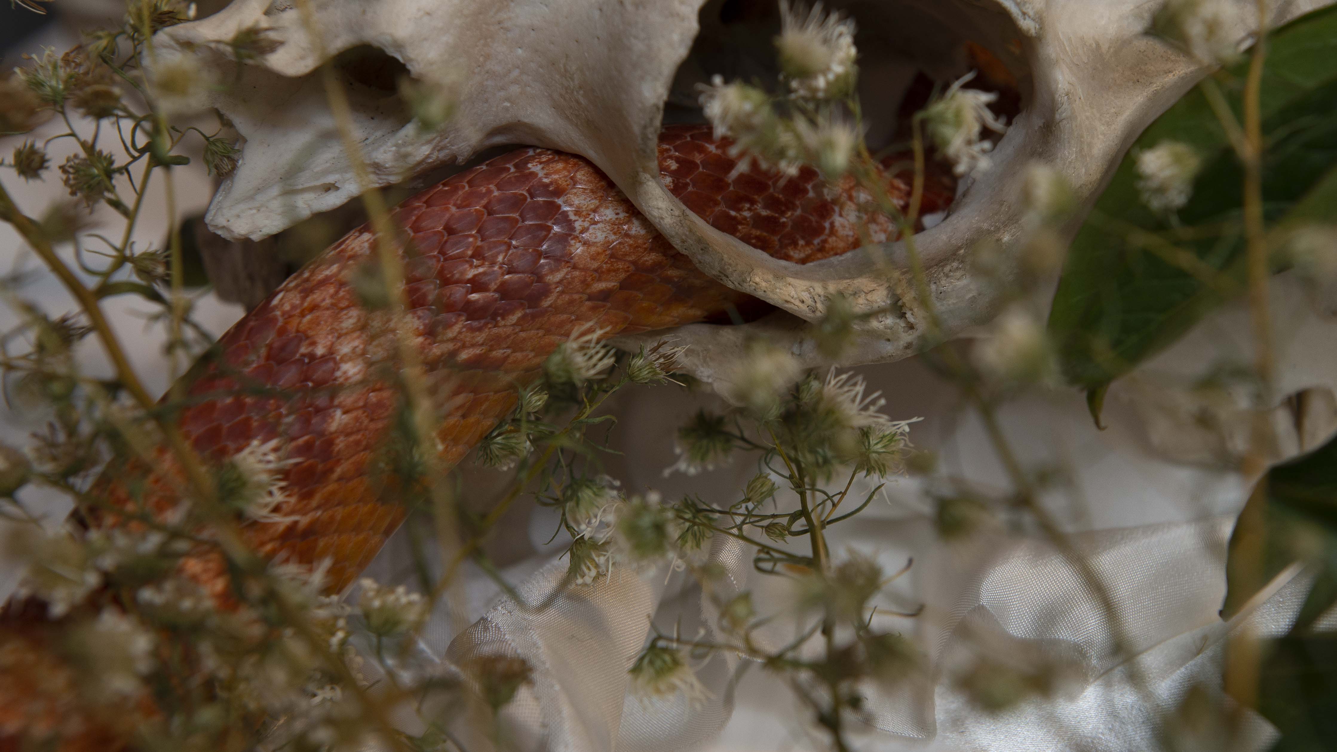 One suggestion from a peer came to just have a singular skull and then photograph the snake with that skull. The first thing that springs to mind with here is combining the snake with the previous images I had taken of skulls on black.