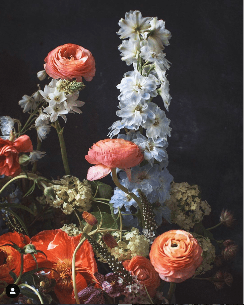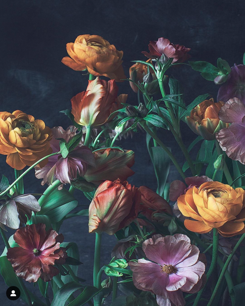 Finnish photographer and ‘influencer’ Kreetta Järvenpää creates these delicately light and choreographed floral arrangements. The use of the darkened background and soft lighting creates a very renaissance feel to these images. The chaos and transition between blooming bouquet and wilting scenes is really stimulating. This makes for a very busy scene which requires a certain taste to observe.