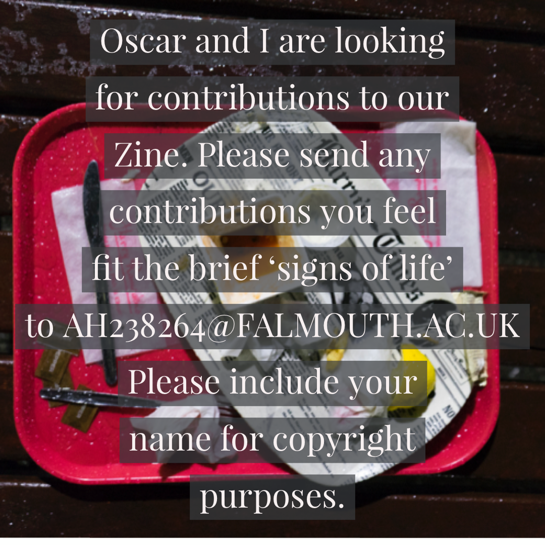 For this task we had to find ourselves into groups to source imagery from other photographers for use in a Zine. I formed a group with Nathan and Oscar where we decided upon the theme of ‘Signs of Life’ and set about creating graphics to obtain entries. The graphics are shown below: