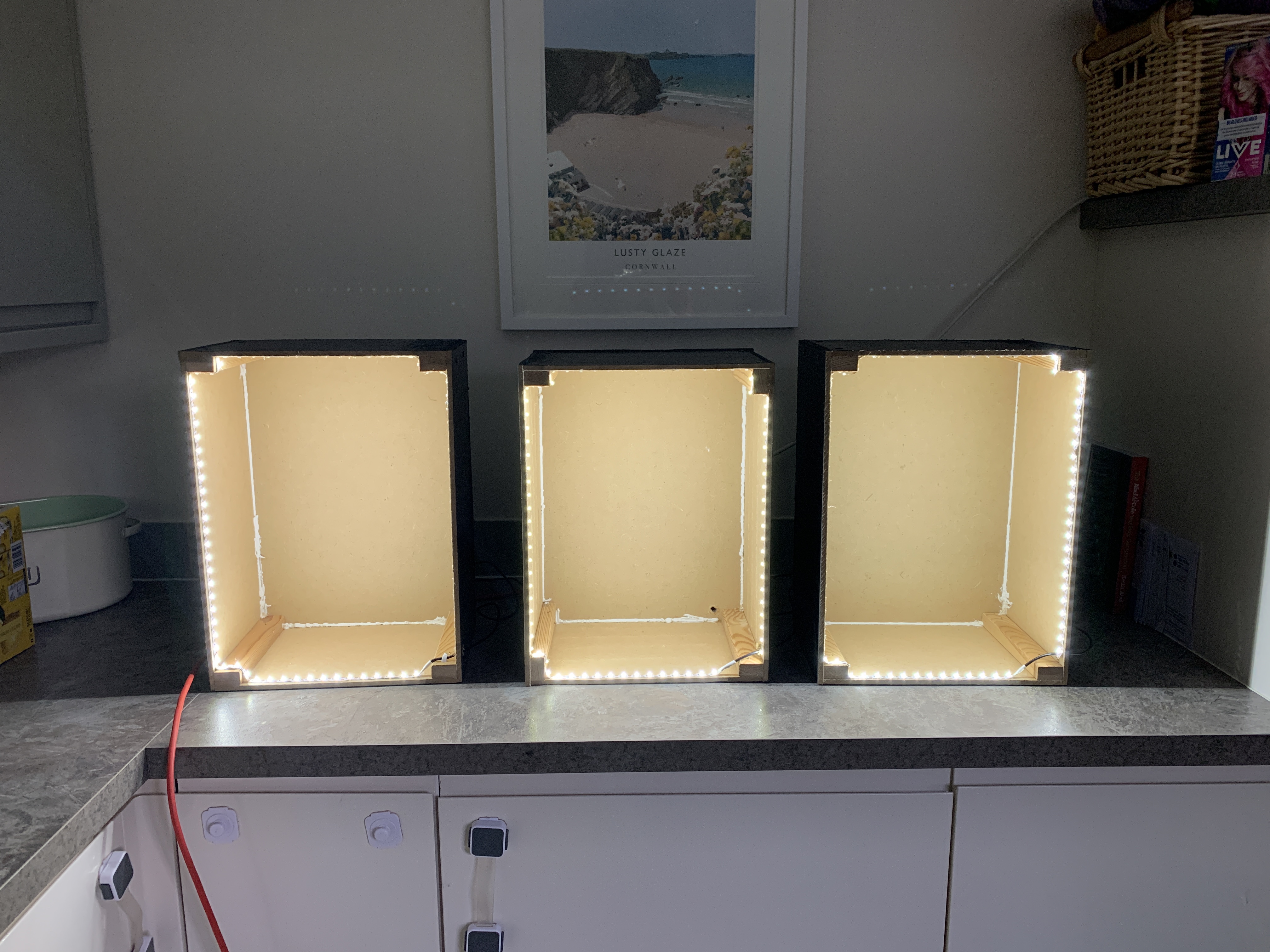 I decided to build light boxes to exhibit some of my scanography images with. These were exhibited in the window of Pigeon Books in Southsea, Portsmouth, England. This is an area of the city I have exhibited in several times and I even curated a gallery bar within this neighbourhood only a few years ago. .These were quite DIY but I’m really pleased with them. This first gallery shows different stages of construction and prototyping to create the light boxes.