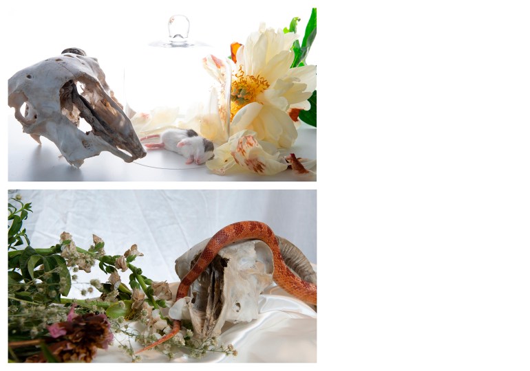 This next image was also an original hesitation until I reflected more deeply upon its possibilities. It comes from a much earlier experiment with deceased rats on coloured papers. These were then stacked in Photoshop and the layer blending mode being altered to change the images appearance. The fading from one to the next through the image emphasises the static state of the rats. Their fading becomes a metaphor for their decay and eventual disappearance.