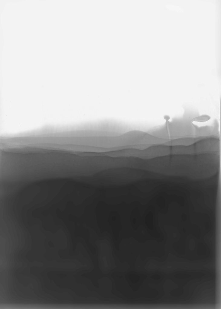 In past webinars it has been commented on by some that much of the work I’m creating in this FMP quite closely resembles landscapes or horizons. I can really see this and love that these abstract, cameraless images are causing that sort of impact on some people. The two photograms below have drawn particular attention during P-2-P webinars as fitting this description.