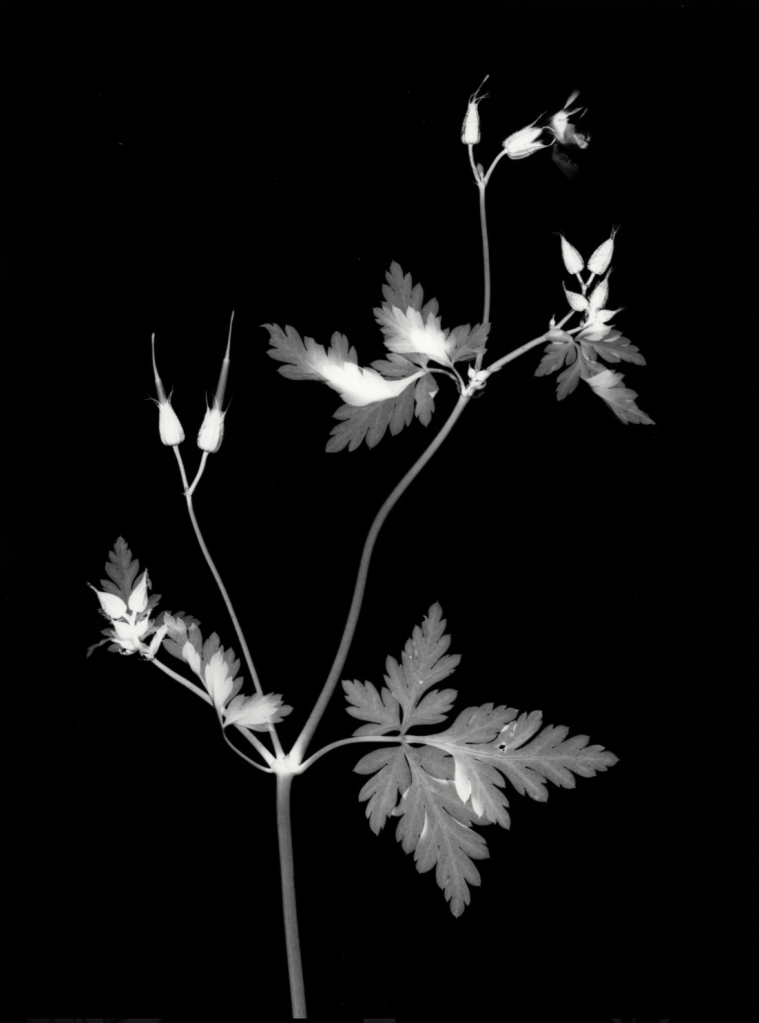 Suburban Herbarium pays homage to the Victorian botanist through the collecting and archiving of plant specimens collected in the suburbs of Truro, Cornwall, England. The uniform 12×16″ photograms are superb examples of the art. With such striking clarity of subject and contrast between dark and light.