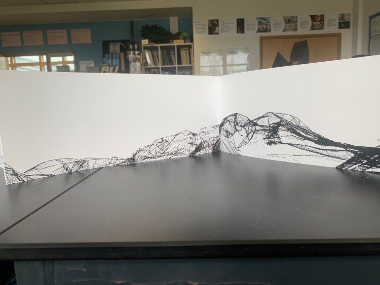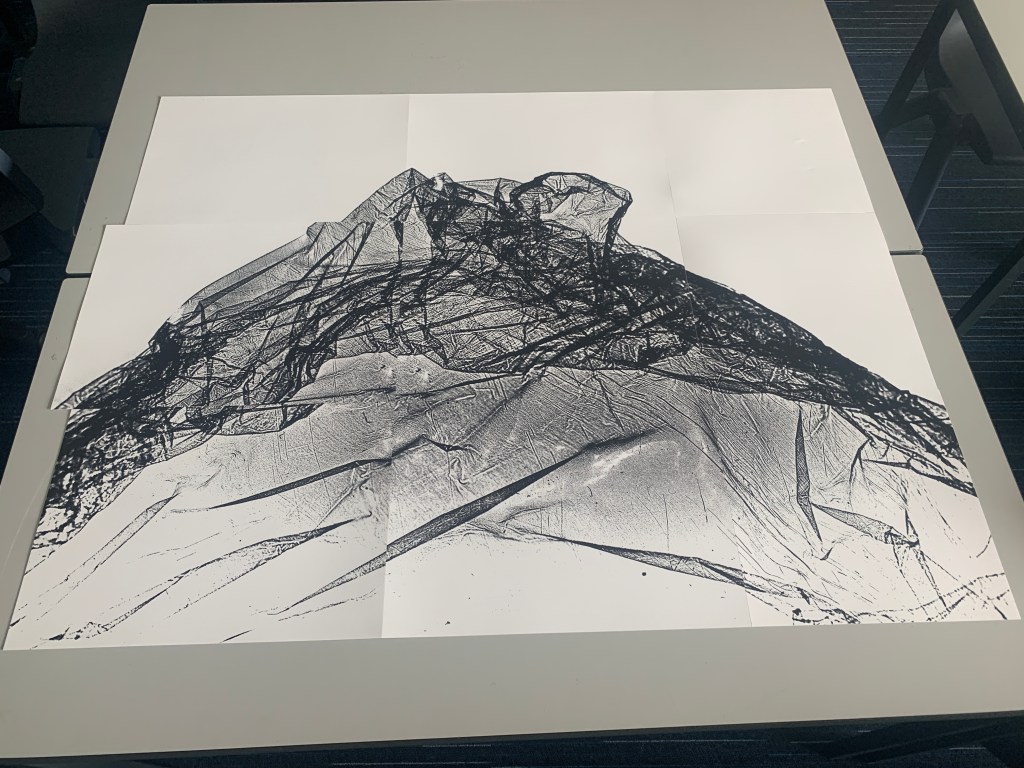 Following the black ‘sky’ images I wanted to present a folding segment which would open out to reveal a large print. The concept is similar to the previously discussed large scale image the size of one of the exhibiting walls. The folding nature of the image is akin to that of a map which has been also previously discussed and links with the topography aspect of the concept.